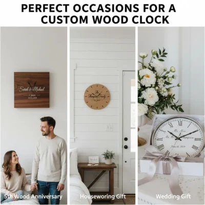 - The 5th “Wood” Anniversary: Tradition dictates that the 5th wedding anniversary be celebrated with wood. It symbolizes the strength, deep roots, and stability of a relationship that has grown over half a decade. A clock is the most poetic way to celebrate this milestone—it represents the thousands of hours you’ve shared and the infinite time still to come.
